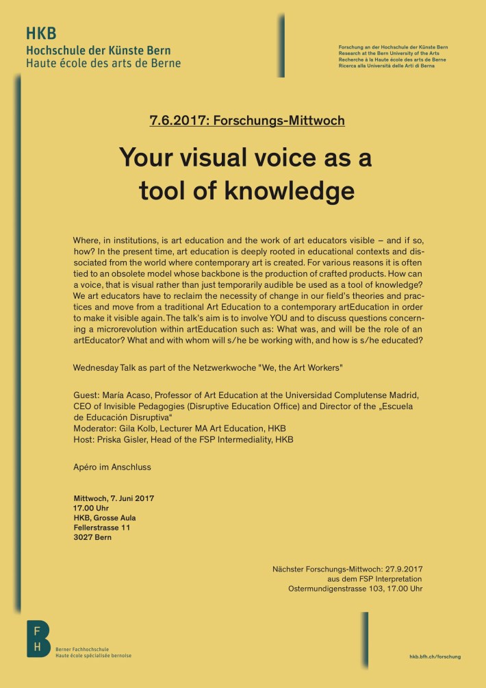 Gast: María Acaso, Professor of Art Education at the Universidad Complutense Madrid, CEO of Invisible Pedagogies (Disruptive Education Of ce) and Director of the „Escuela de Educación Disruptiva“