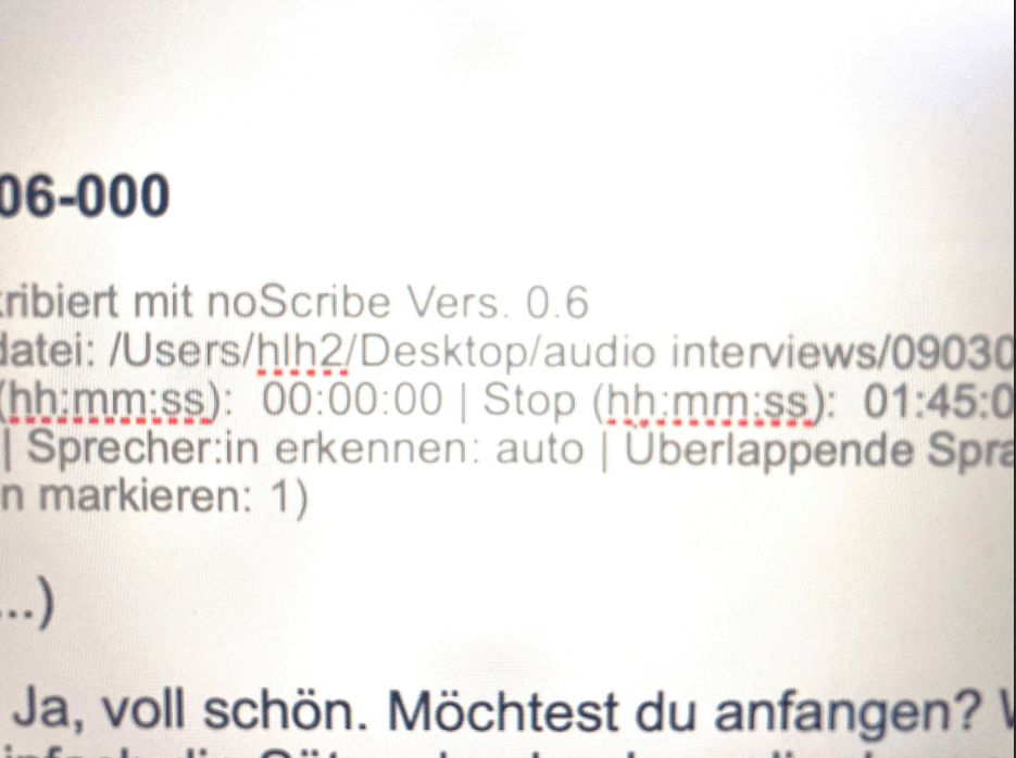 Was wir bereits gelernt haben: die Gespräche finden in Zukunft auf Hochdeutsch statt (noScribe ist doch nicht so gut in Mundart wie gedacht). Und unsere Gegenüber werden statt 12 nur 7 Sätze auswählen.
