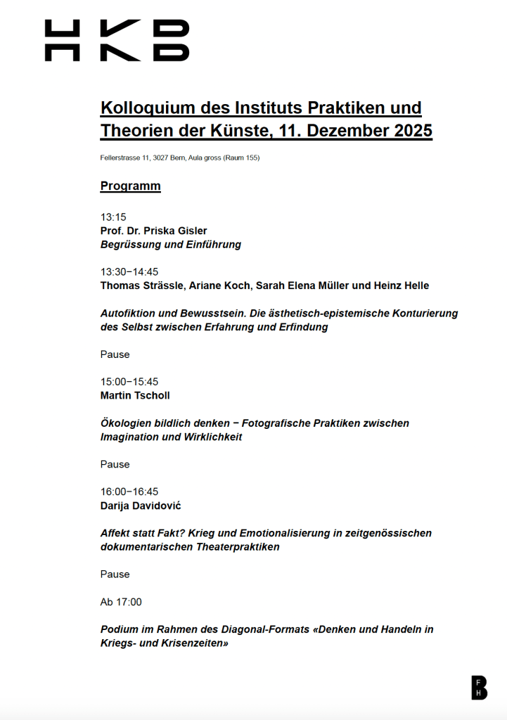 Das Kolloquium findet am Donnerstag, 11. Dezember, an der HKB statt und bietet wie jedes Semester Einblicke in aktuelle Forschungsprojekte von Doktorierenden und Mitarbeitenden des Instituts.