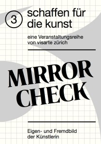 Mirror Check – schaffen für die Kunst 21.02.2018 ZhdK, Toni Areal eine Veranstaltungsreihe von visarte Zürich Ausgehend von tradierten Künstler-Typen, wurden aktuelle Fragen um Status und Eigenwahrnehmung der Künstlerinnen diskutiert. Mit welchen Rollenbildern und Erwartungen sehen sich Künstlerinnen konfrontiert,