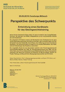 Perspektive des Schwerpunkts Entwicklung eines Gerätesets für das Gleichgewichtstraining Forschung-Mittwoch am 25.05.2015 um 17:00 Uhr aus dem FSP Intermedialität. Mit Apéro im Anschluss. Gäste: Eling De Bruin, Prof. Dr. Bewegungswissenschaften und Sport, ETH Zürich, und Monica Gillette, Tänzerin, Theater Freiburg