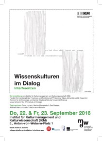 Vortrag von Priska Gisler und Maria-Theresia Kandathil an der Internationalen Tagung Wissenskulturen im Dialog – Interferenzen am IKM Wien. Donnerstag 22. September 2016 Priska Gisler & Maria-Theresia Kandathil Die Kunstfigur als interferierendes Identitätskonstrukt zwischen Kunst und Wissenschaft (mit Dialog, ohne Schnittstelle) Programm